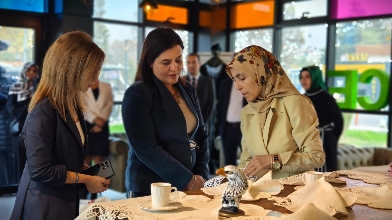 Açılışın ardından sergiyi gezen Sayın Pınar ASLAN Hanımefendi, sanatçılarımızın sergiledikleri eserleri tek tek inceleyerek eserler hakkında kursiyerlerden bilgi aldı. Programın sonunda Sayın Hanımefendi katkılarından dolayı eğitmen ve kursiyerlere teşekkür ederek katılım belgelerini takdim etti.