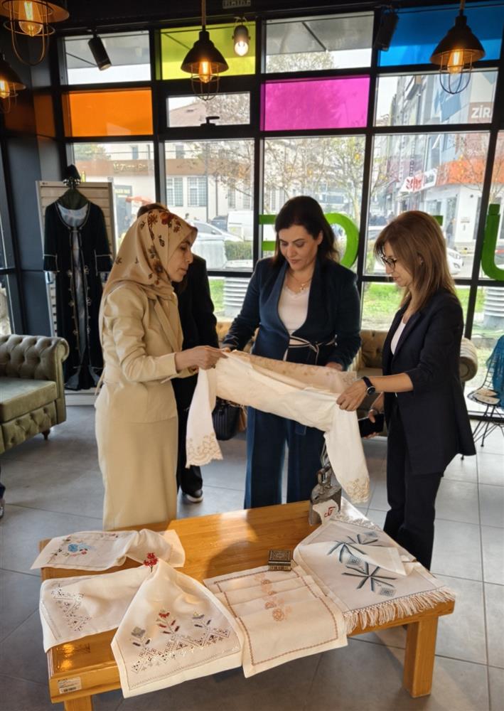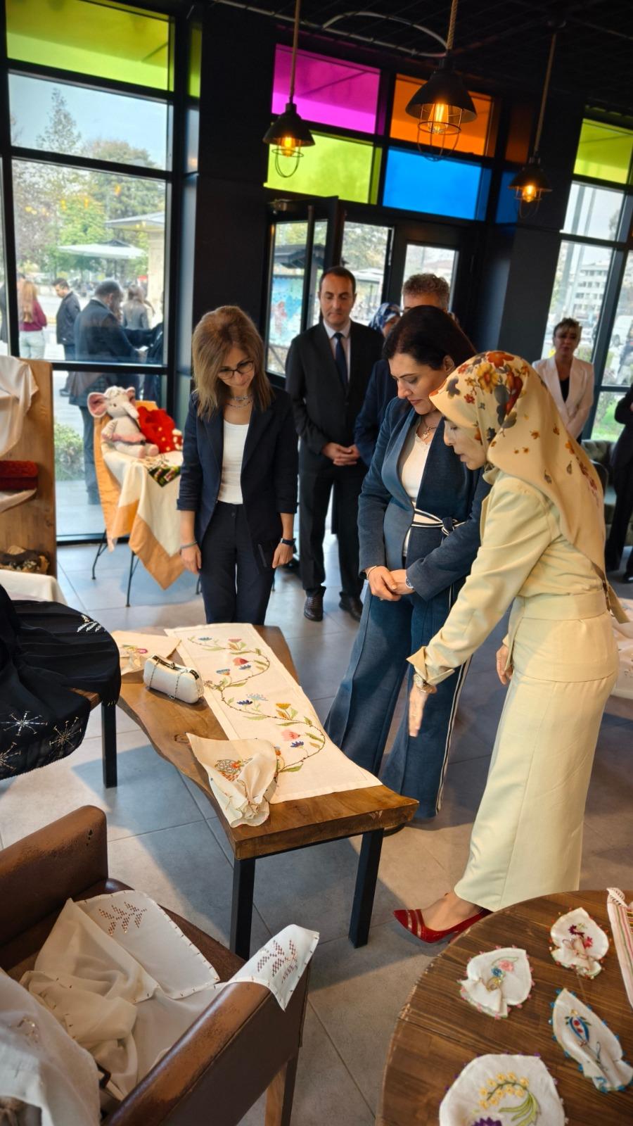 Düzce Valimiz Sayın Selçuk ASLAN’ın eşi Sayın Pınar ASLAN Hanımefendinin teşrifleriyle açılışı gerçekleştirilen sergiye, Düzce İl Kültür ve Turizm Müdürümüz Sayın Esra ALEMDAROĞLU, kurum müdürleri, kursiyerler ve vatandaşlar katılım sağladı.