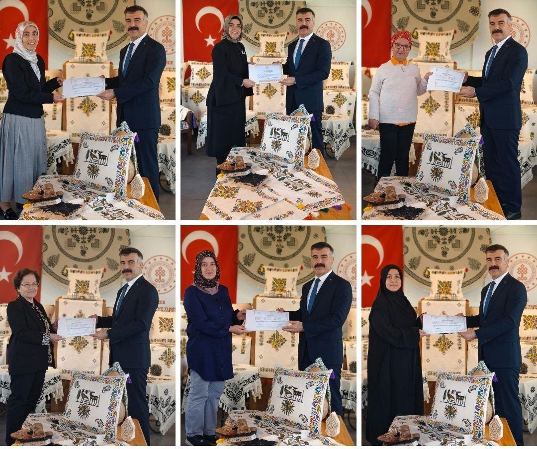 Açılışın ardından sergi gezilerek kursiyerlerin hazırladıkları ürünler tanıtıldı. Programın sonunda Vali Yardımcımız Sayın Dr.Ömer YILMAZ, katkılarından dolayı eğitmen ve kursiyerlere teşekkür ederek katılım belgelerini takdim etti.