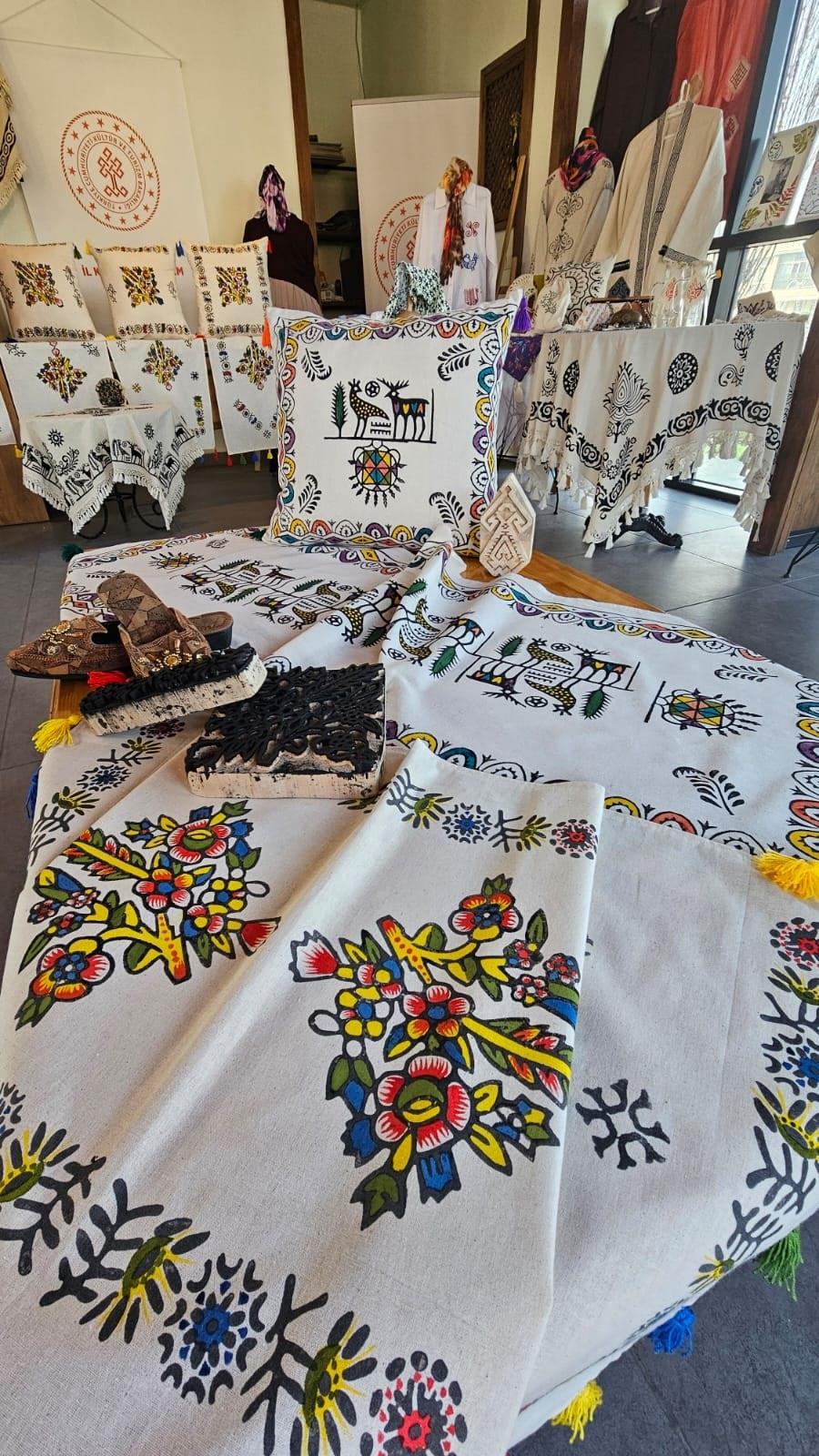 Bakanlığımız Yaşayan Miras ve Kültürel Etkinlikler Genel Müdürlüğü tarafından yürütülen “Türk Süsleme Sanatları ve Geleneksel El Sanatları Kursları Yönetmeliği” kapsamında, geleneksel sanatlarımızı yaşatmak ve gelecek nesillere aktarılmasını sağlamak amacıyla Somut Olmayan Kültürel Miras Taşıyıcısı Kartı sahibi Rukiye YEŞİL’in eğitmenliğinde, 29 Eylül-6 Kasım 2025 tarihleri arasında gerçekleştirilen “Ahşap Baskı Yapımı Kursu”nda kursiyerler tarafından özenle hazırlanan ürünler 4-5 Aralık 2025 tarihlerinde Turizm Enformasyon Bürosunda düzenlenen sergiyle ziyaretçilerin beğenisine sunuldu.